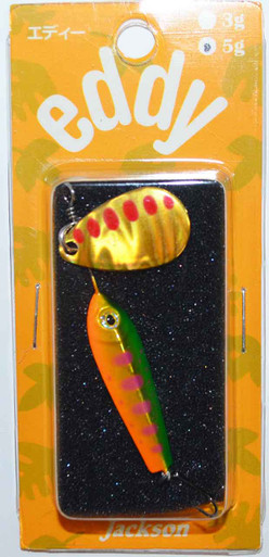 The Jackson Eddy Lures are a trout spinner metal designed for use in dams and deeper areas when chasing trout. Even on a slow retrieve the metal spinner blade continues to spin and attract fish down in the depths, from afar or in murkier water.