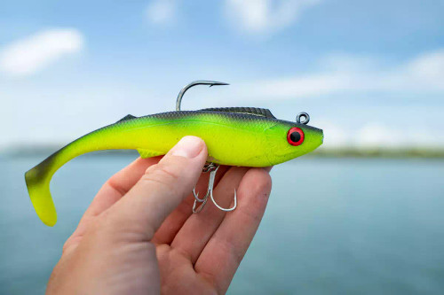 If you’re the type of angler who likes to target big fish that pull hard then the Berkley Shimma Pro-Rig lure is one you’re going to want to add to your tackle box. Fitted with a removable weighted hook and a single Owner STX Taff Wire Treble and a Hyperwire split ring, this bait is an out-of-the-packet solution for prized fish like mulloway, barramundi and Murray cod. With a thick body profile and a tapered off paddle tail, the Shimma Pro-Rig has a strong body roll and a wide tail action, perfect for slow rolling across weed beds, rock bars, and drop offs for those ambush predators. Built from durable Thermal Plastic Elastomer (TPE), the body is super tough and withstands plenty of punishment from predators with serious jaw strength, and raspy or toothy mouths! The Shimma Pro-Rig is available in ten colours and three sizes to suit a wide range of species in both fresh and saltwater environments. Every angler hunting serious fish needs a Shimma Pro-Rig in the tackle box.