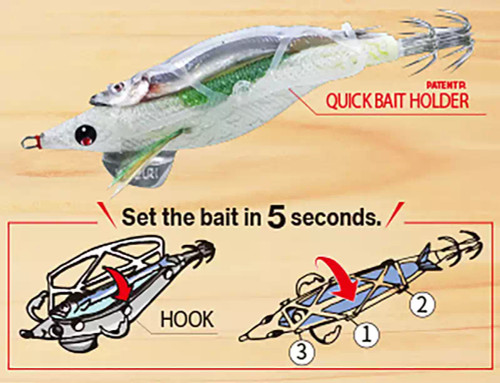 The Sushi-Q is a great all-rounder of a squid jig that is perfect for both day and night fishing. The “Quick Bait Holder” allows you to set the bait in as little as 5 seconds.